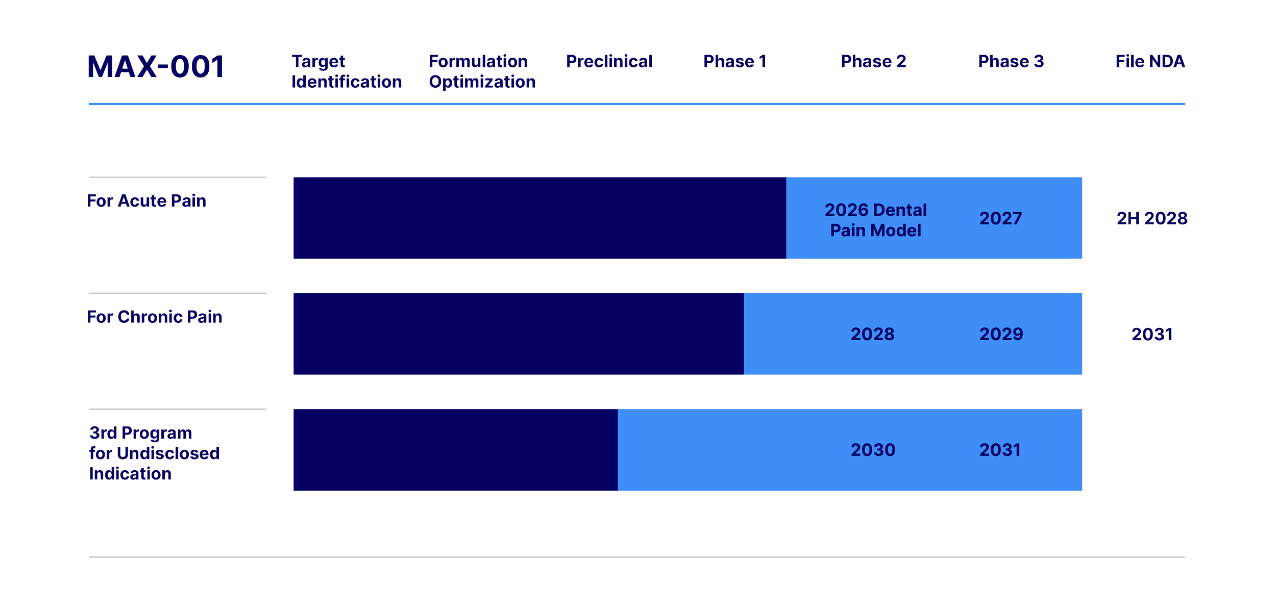 Additional development platforms for MAX-001 include chronic pain and additional dosage forms and indications.